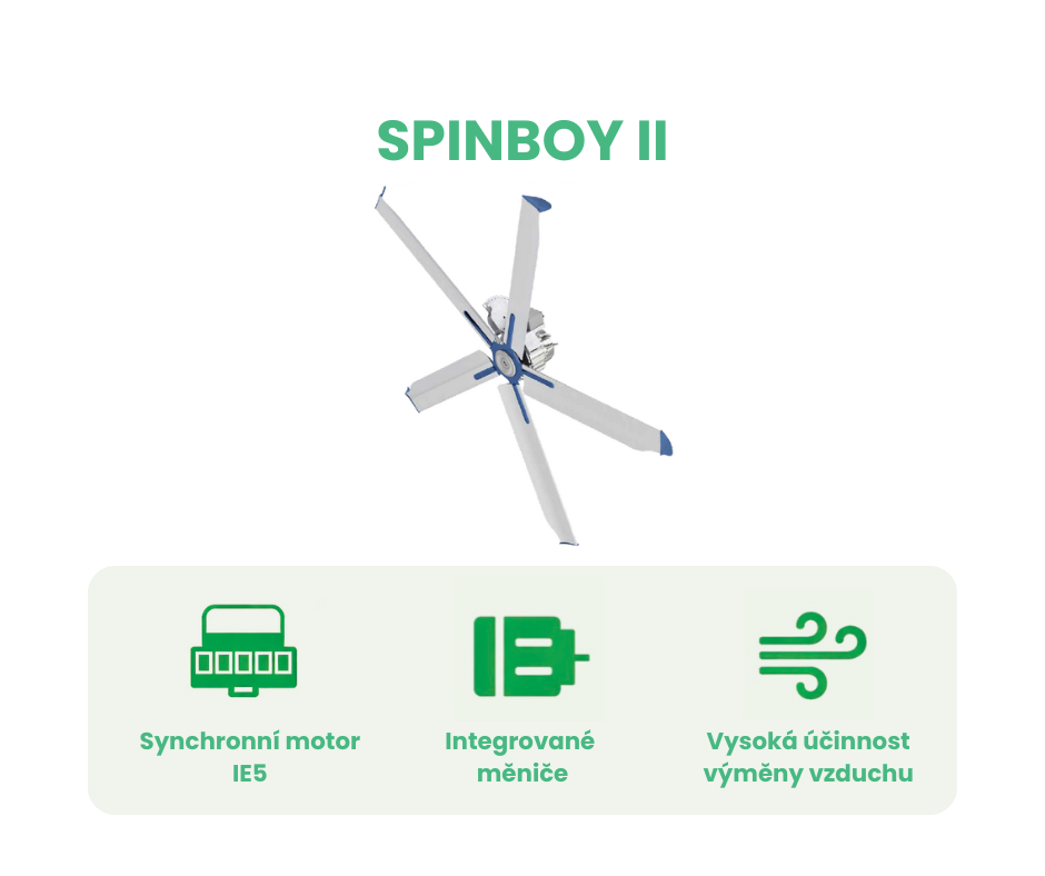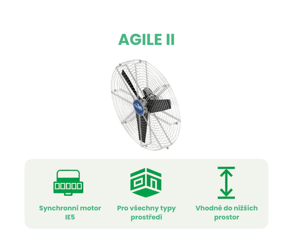 Ventilátory umožňují naklápění i reverzní chod pro optimální cirkulaci vzduchu v létě i zimě.